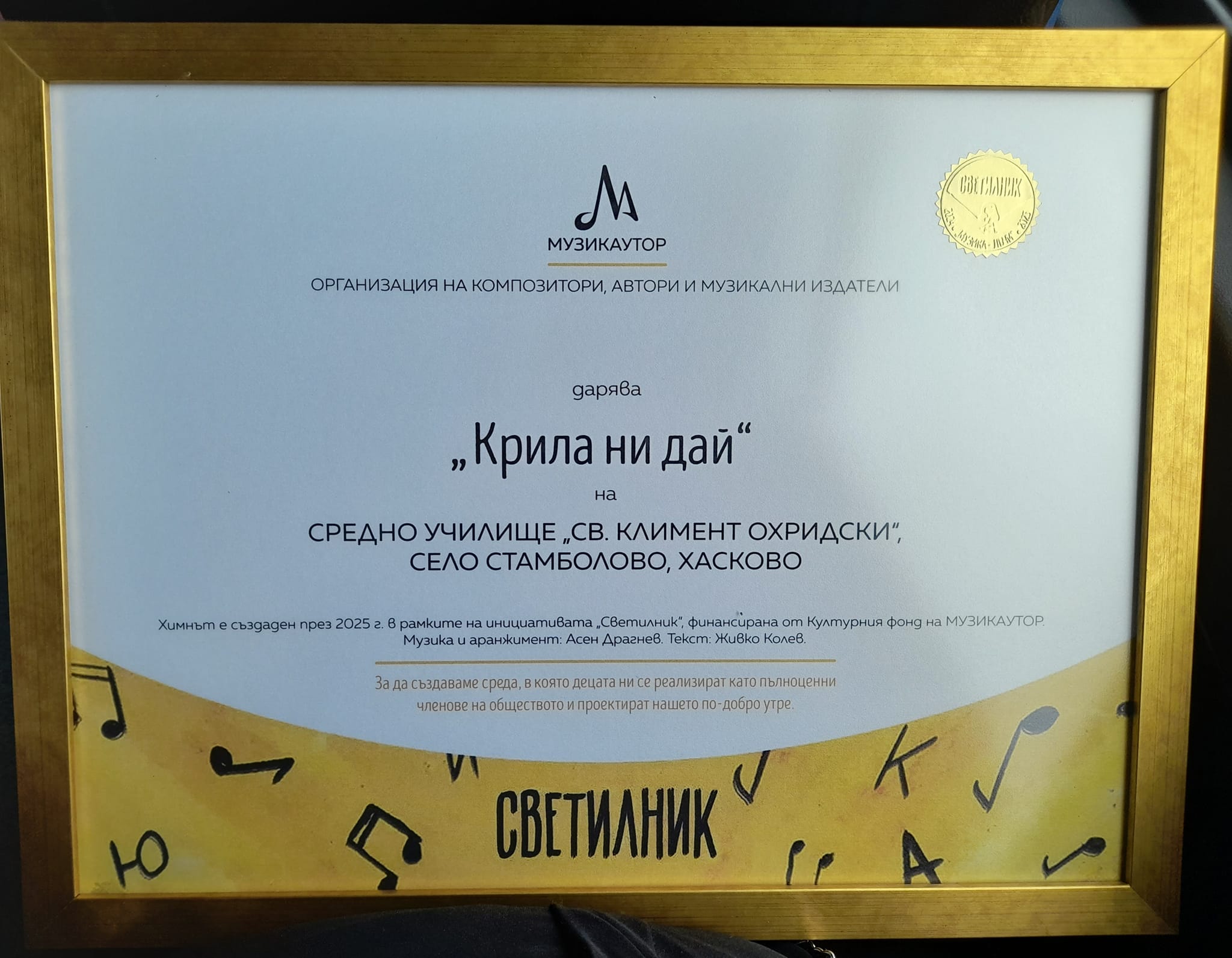 "КРИЛА НИ ДАЙ" - ХИМНЪТ НА СУ "СВЕТИ КЛИМЕНТ ОХРИДСКИ", СЕЛО СТАМБОЛОВО