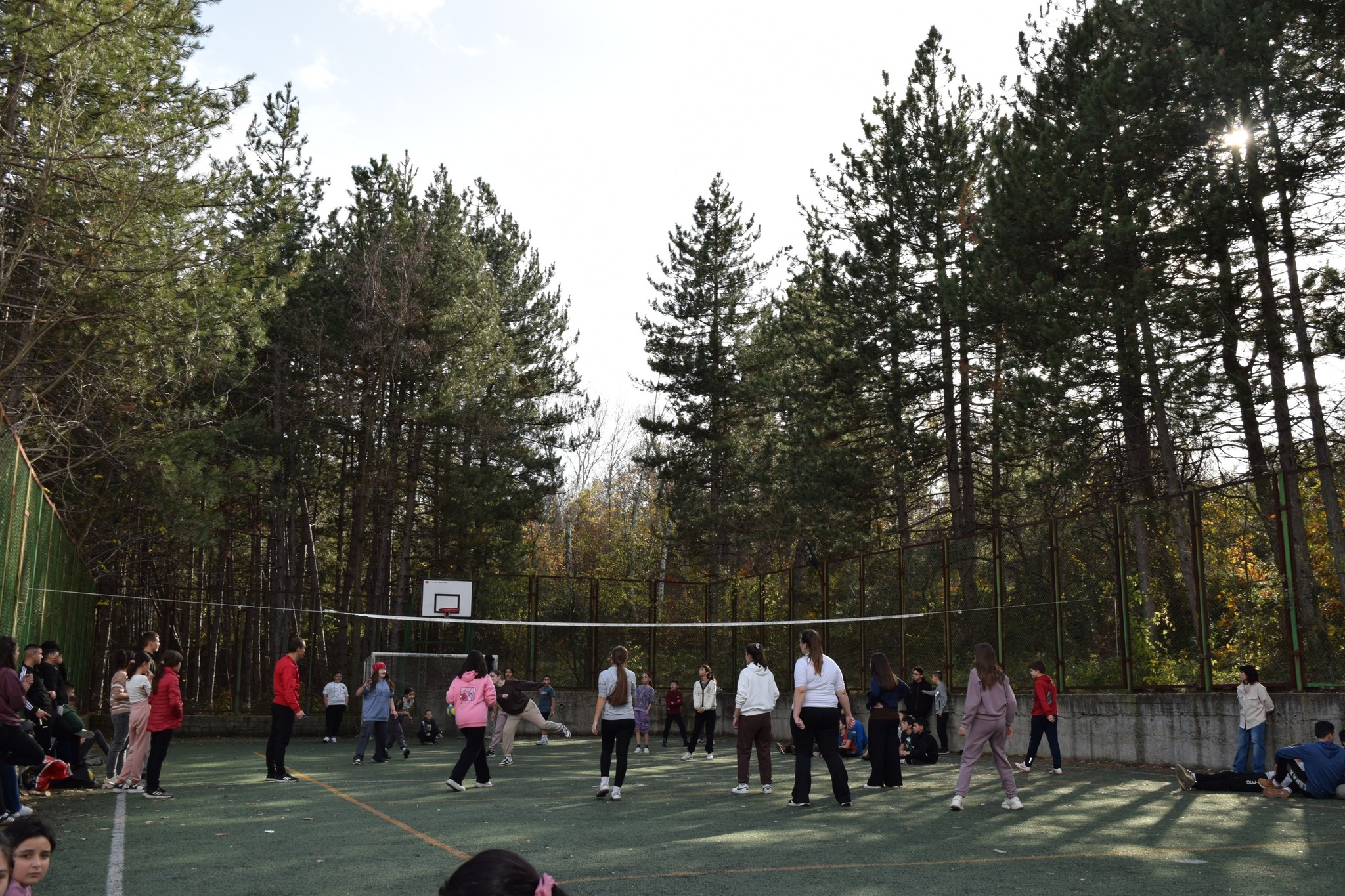 След състезанията на игрището се проведоха вълнуващи двубои по волейбол. Момчетата играха срещу момчета от друг клас.