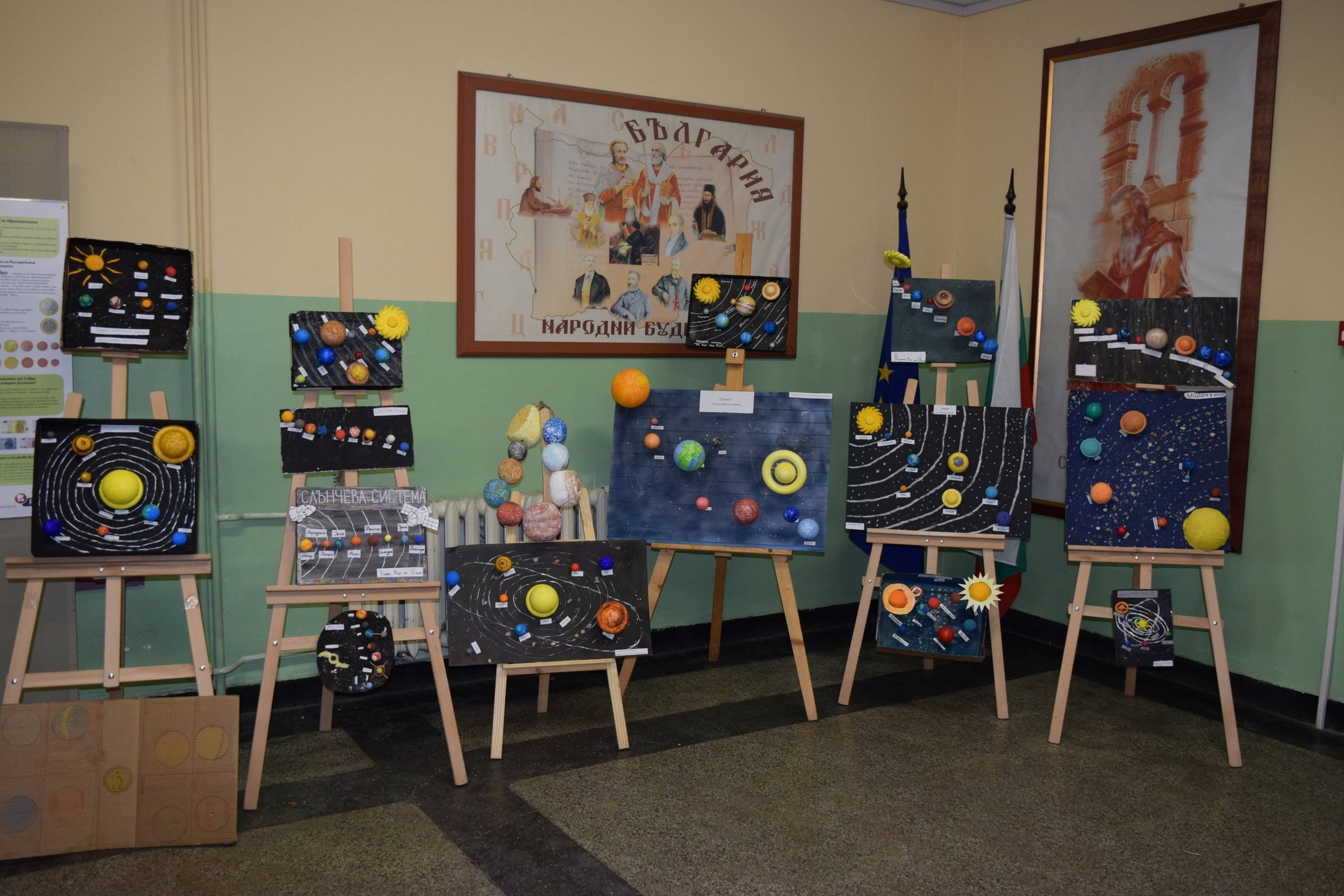 Учениците от 4. клас създадоха невероятни макети на Слънчевата система, които не само че показват тяхната креативност, но и вдъхновяват всички около тях. MВсеки макет е изпълнен с внимание към детайлите, а цветовете и форми на планетите оживяват на хартия и модел. Тези удивителни произведения на изкуството са изложени на първия етаж на училището, където всеки може да се възхити на труда и фантазията на учениците. Изложбата не само радва окото, но и напомня за безкрайната красота и величие на нашата Слънчева система.