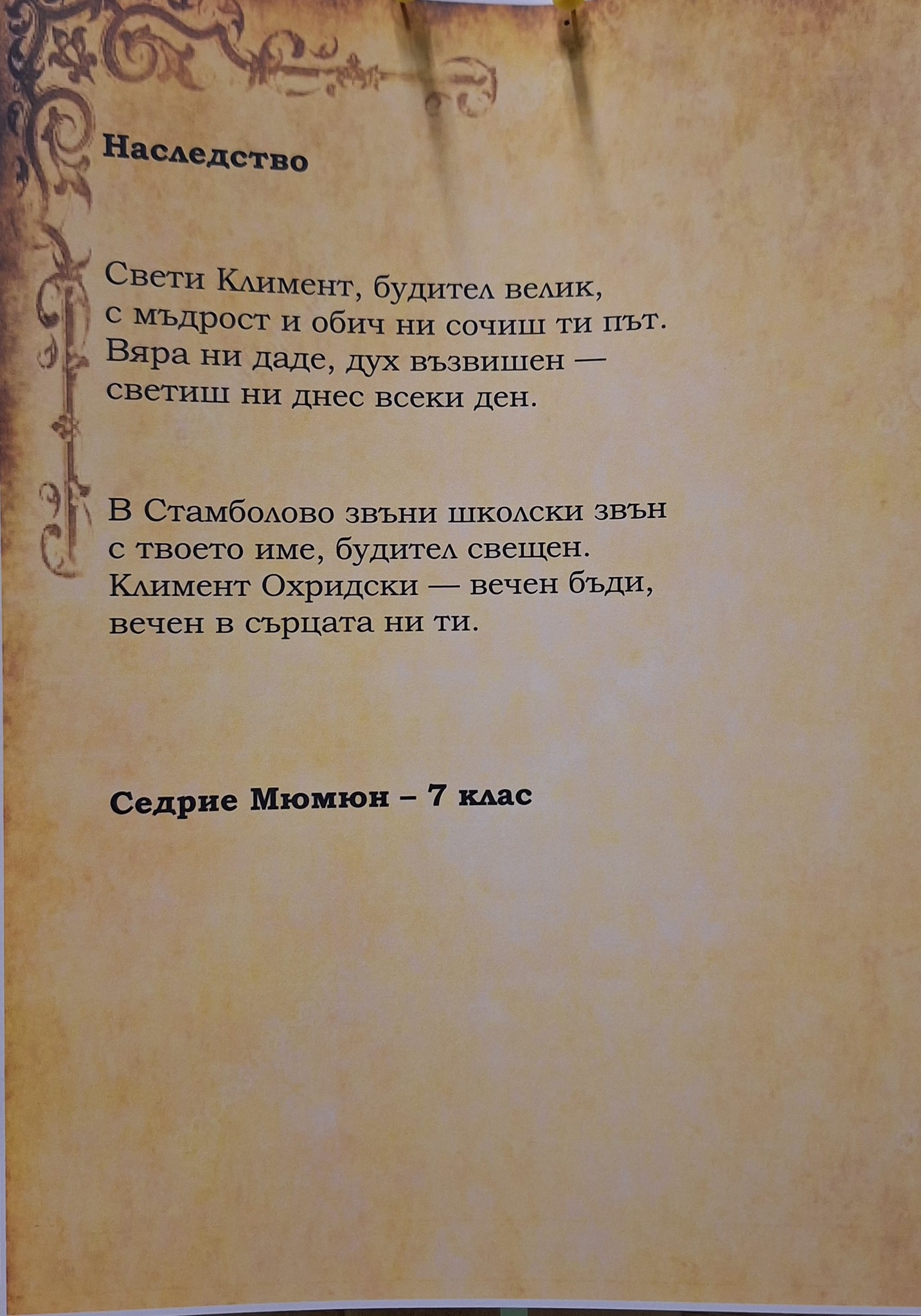 Третият ден от седмицата, посветена на Климент Охридски, беше отдаден на „Изкуството да пишем“. Децата създадоха свои стихове, вдъхновени от неговото дело и направиха първи стъпки в поетичното творчество.
