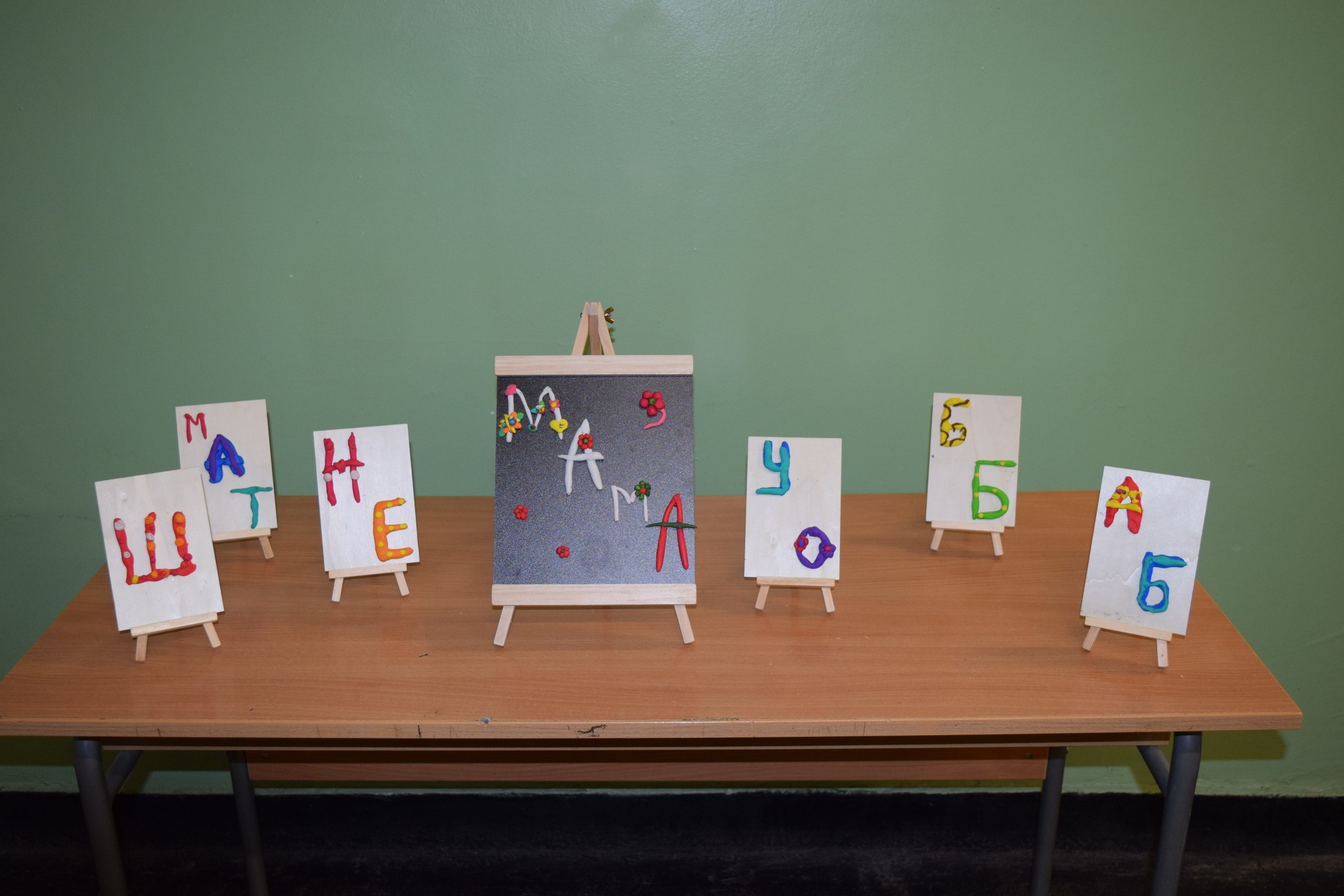 Децата от 1. и 2. клас изработиха красиви букви от пластелин, с които изписаха най-скъпата дума " мама".