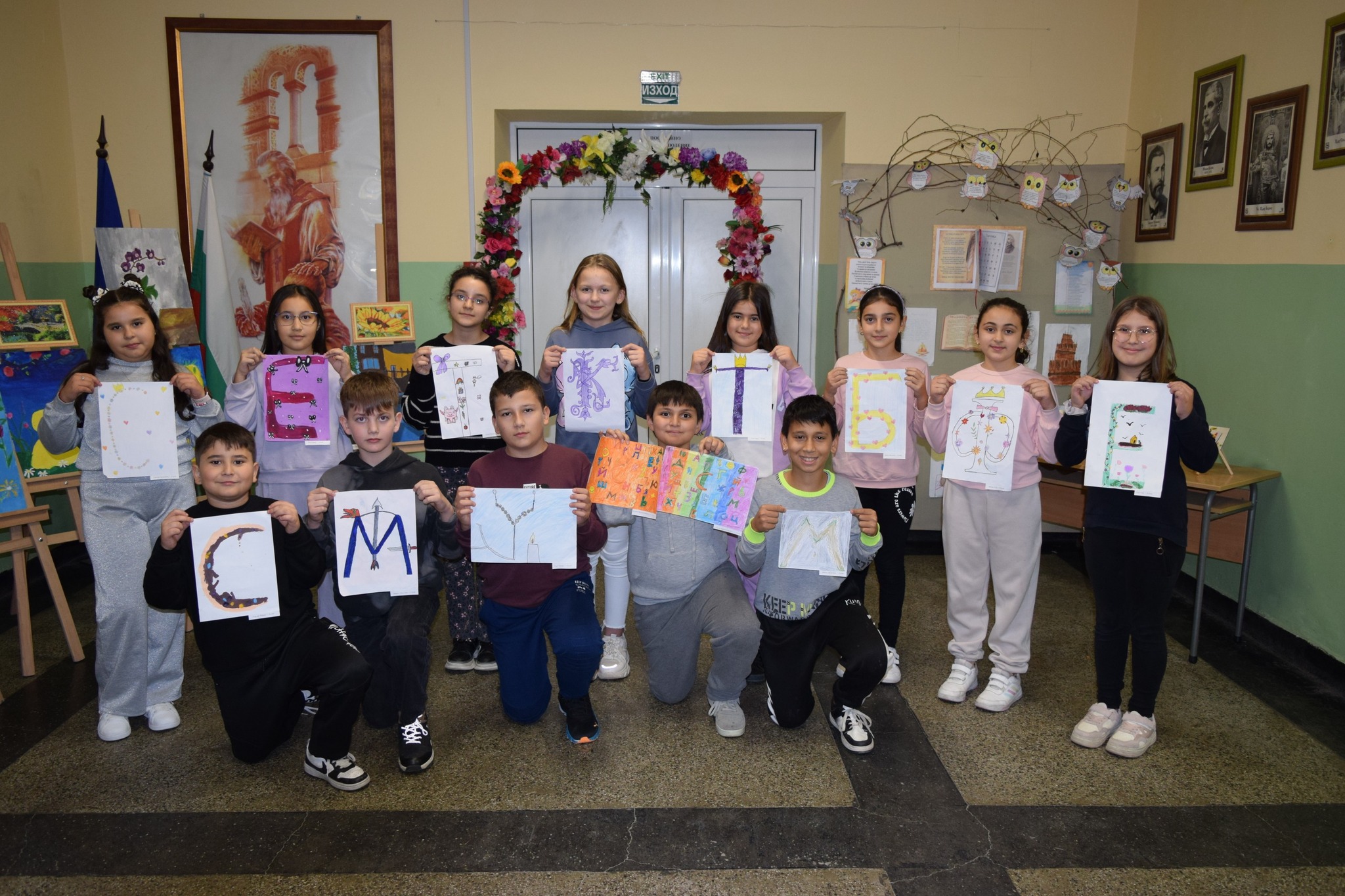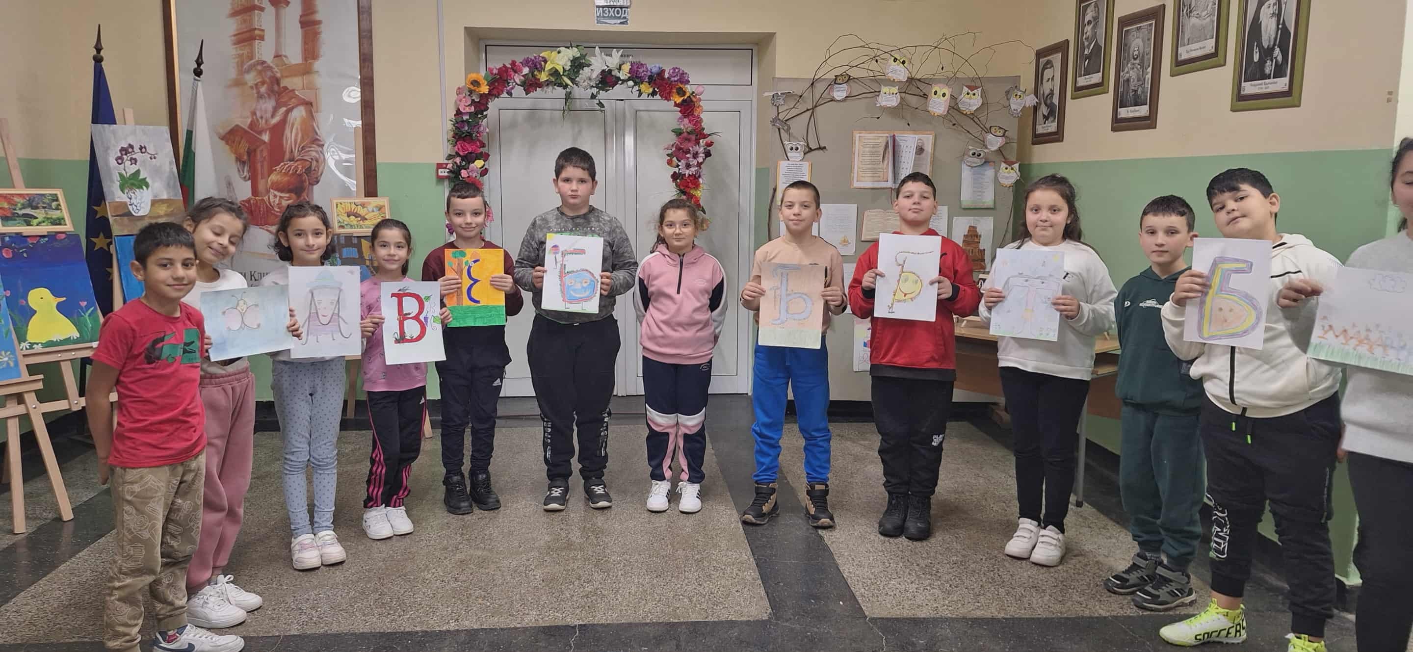 Третокласниците и четвъртокласниците рисуваха букви и портрети на Кл.Охридски.